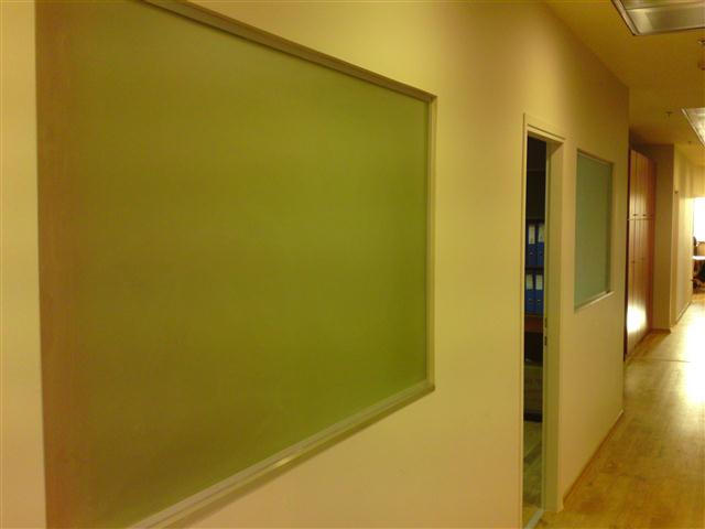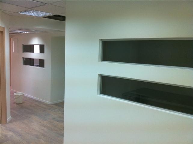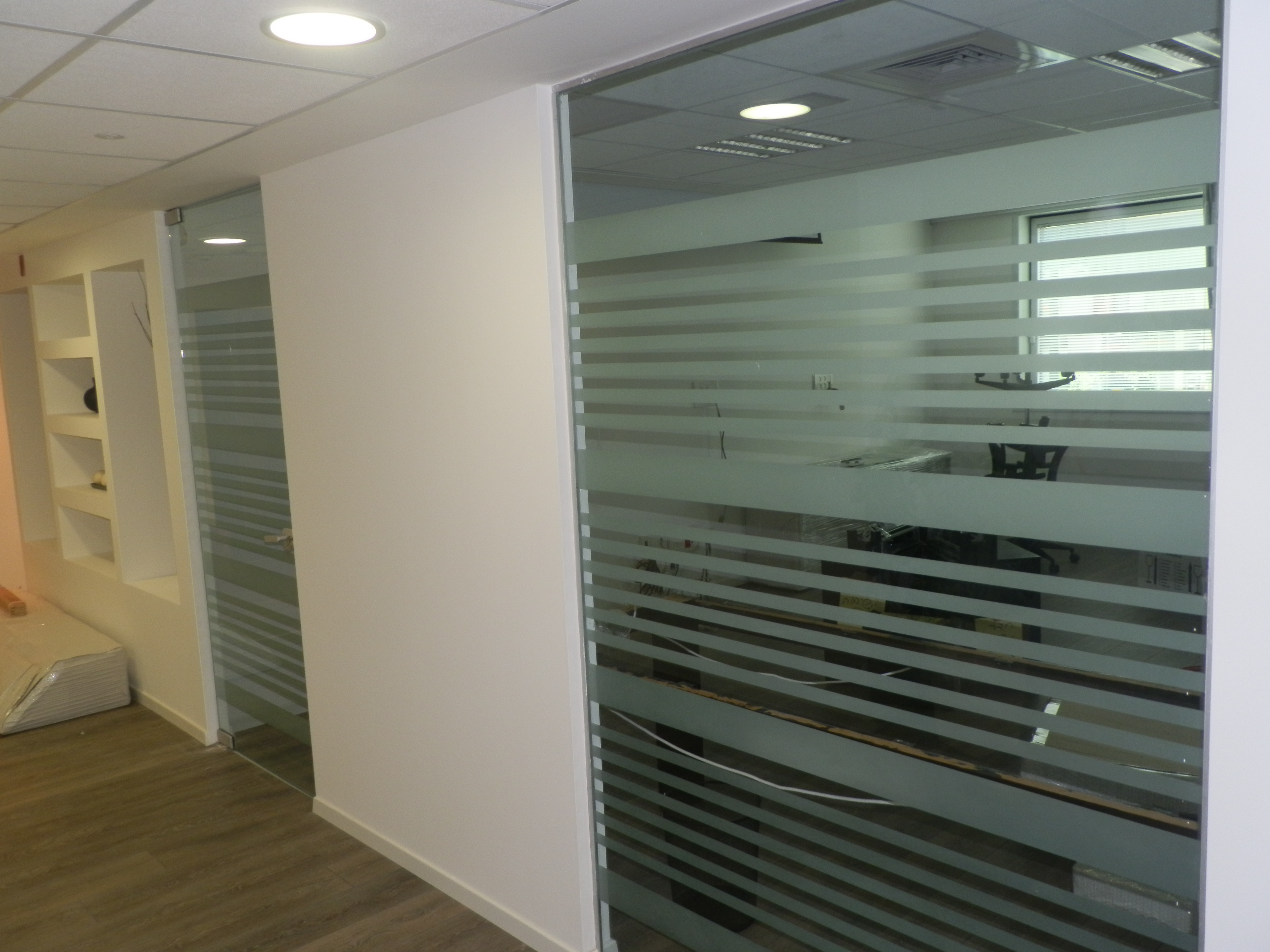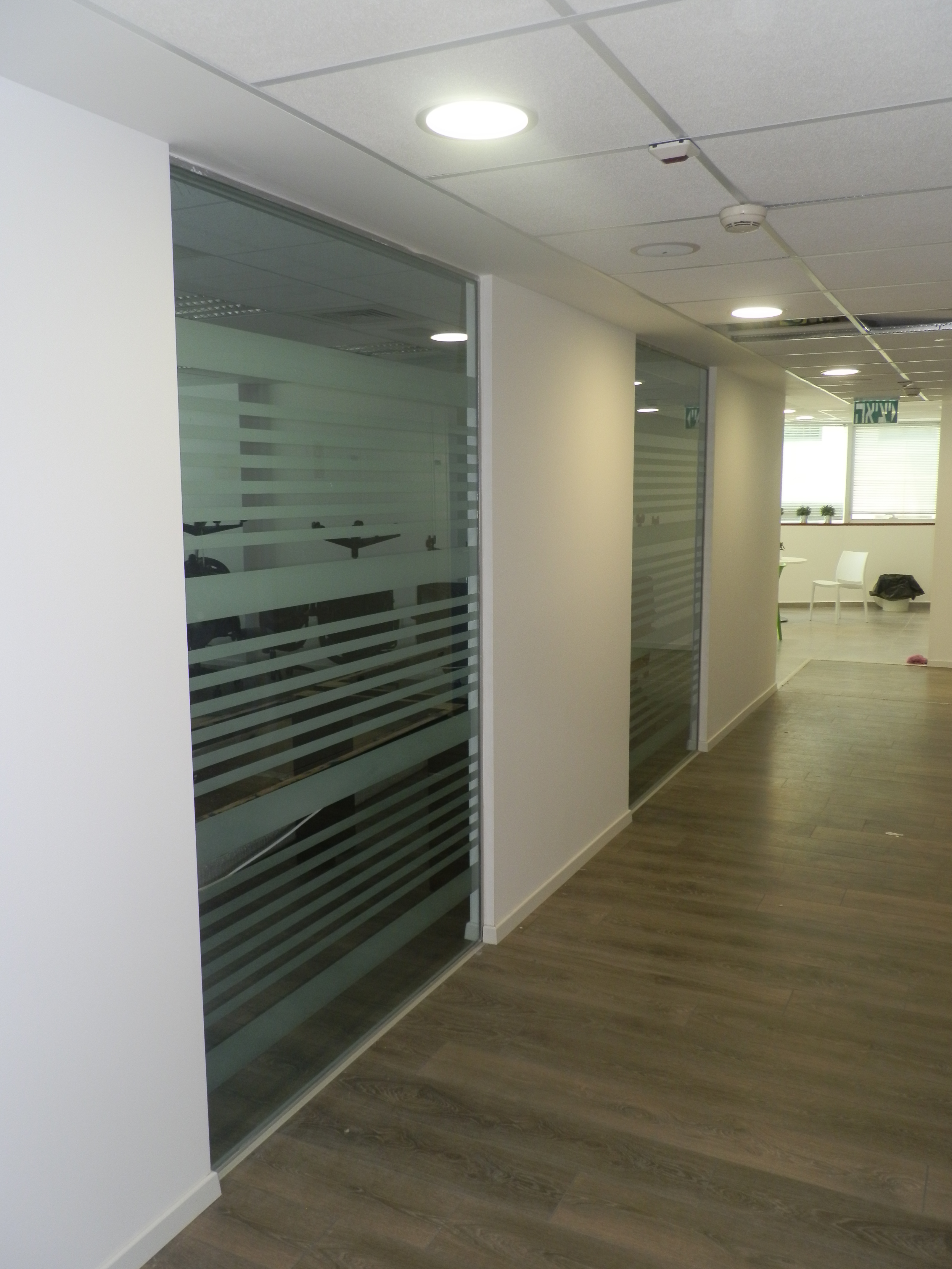 ניתן ליצור מחיצות זכוכית שקופה או אטומה אשר מחלקות את שטח פנים המשרד בצורה הפשוטה ביותר, תלוי באופי הניהול.